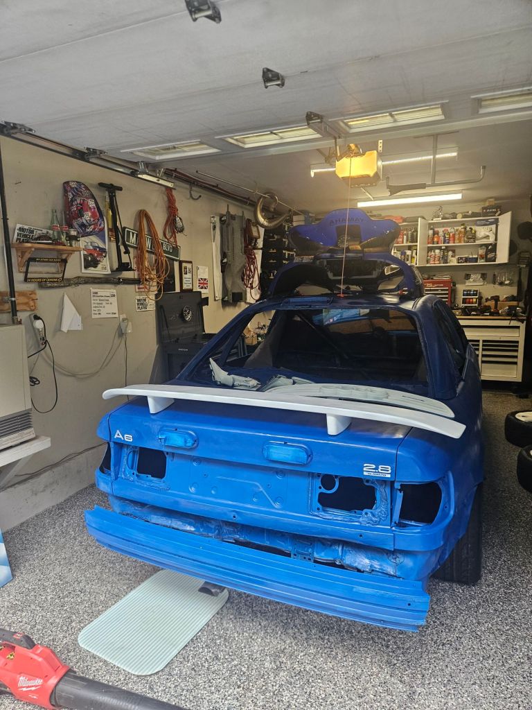 As I’ve written about before, I recently bought a 24 Hours of Lemons race car for $400. It was a pink 1996 Audi a6, with the 2.8 v6 up front and a snowmobile engine in the back. Over the summer, I’ve done lots of work and made plenty of improvements to the car. The most obvious ones, as you’ve likely seen from the cover image, are the car’s new blue livery and the snowmobile hood mounted to the roof. My first order of business over the summer was painting the car. I mocked up liveries in Forza until I found one I liked. My team and I decided that a New Hampshire theme would work well for the car. A state known for redneck engineering and snowmobiles? Perfect for the snowmobile-engined contraption that is the Yamahaudi. And, as was once said in a 24 Hours Of Lemons youtube video, while describing the Snouty Audi, “New Hampshire really is the Alabama of the North.” I decided on Krylon gloss patriotic blue, a decision that I entirely regret. I went through tons of sandpaper, plenty of primer, and about 12 cans of blue paint to get a proper basecoat. It was around this point that I found out that I should’ve bought a dedicated automotive paint, as the Krylon really wasn’t working that great for this application. And, to salt my wounds, we bought out all of our local stores of it, and became largely unable to find any more from a store a reasonable distance from my house. Alas, I had to turn to the internet.