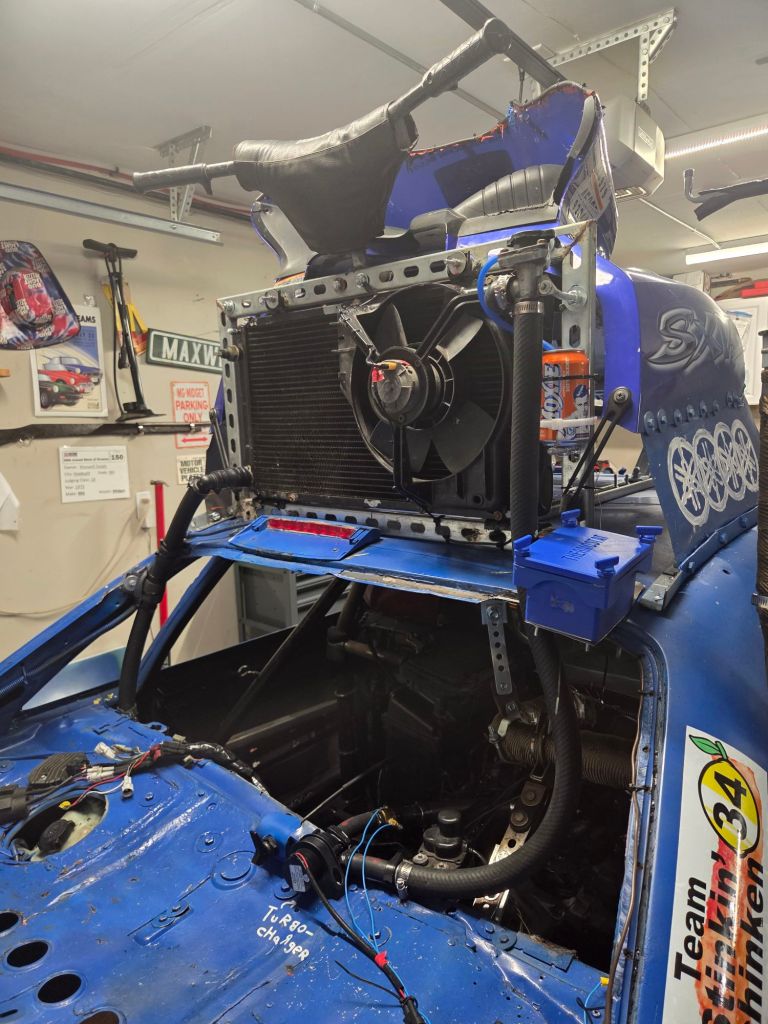 Aside from new seatbelts, a repair to the race seat that involved my mom’s sewing kit and some fishing line, and general maintenance, there haven’t been many other dramatic changes to the car. We’re on track to be ready to race for Loudon’s Halloween Hooptiefest in October, with both engines! Anyone else who races us will certainly know us by the sound/smell of the 2 stroke engine. I hope to see some of you there, and thanks for reading!